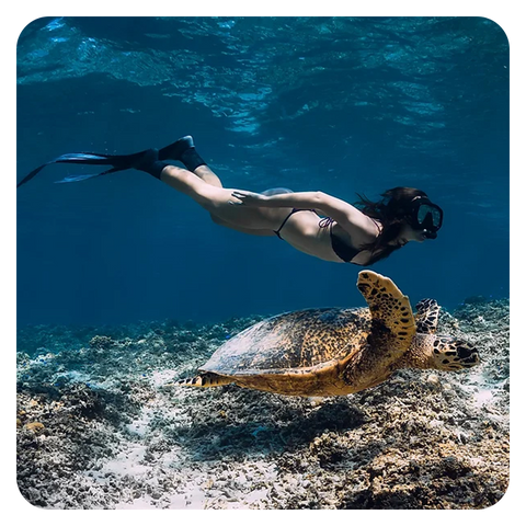 使用呼吸裝置在水下自由探索的活動,帶你進入神秘的海底世界,近距離觀察珊瑚、魚群與海龜,是親近自然、享受寧靜與冒險的最佳方式。